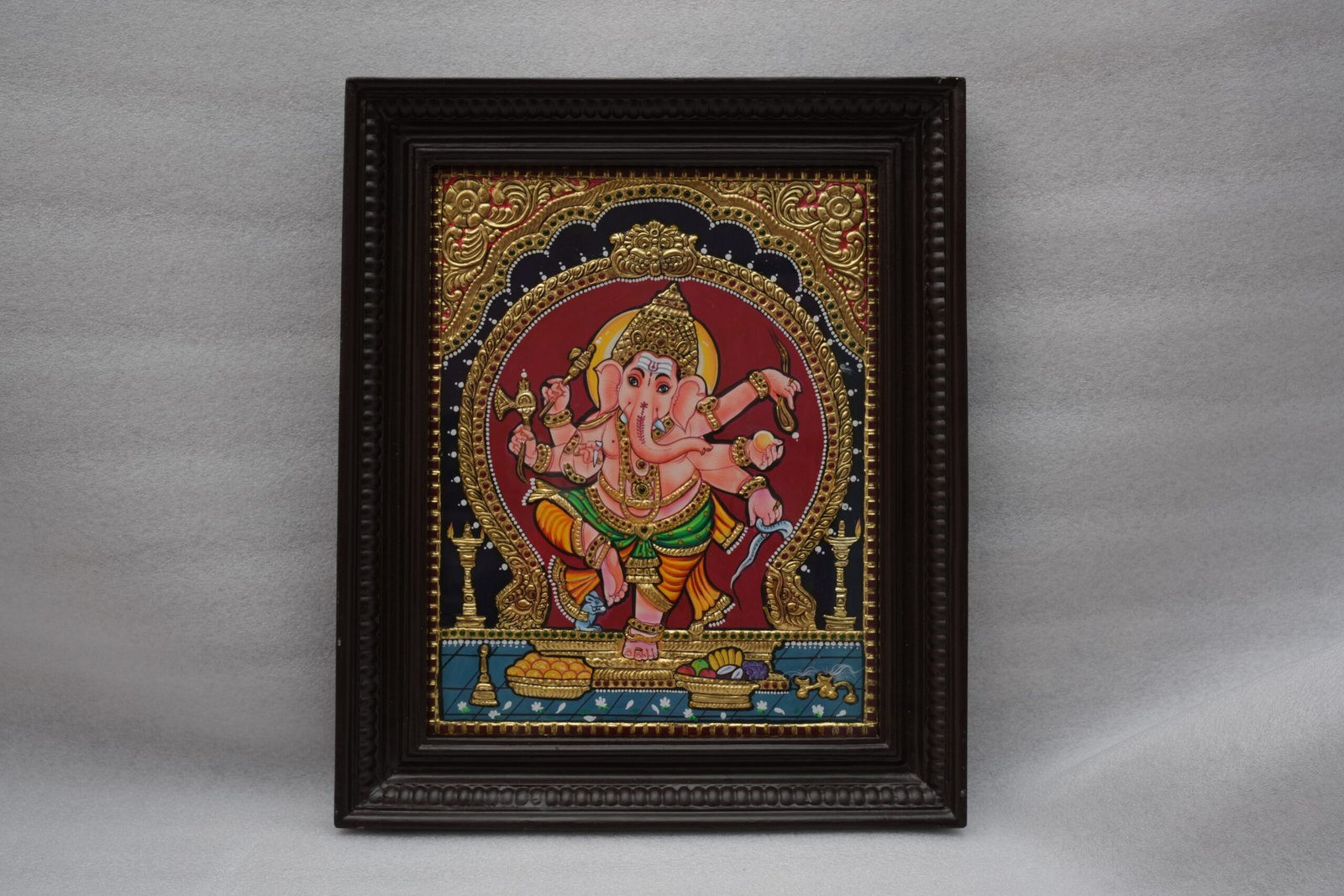 Bring home divine energy and artistic elegance with this exquisite Dancing Ganesh Tanjore Painting. Crafted with intricate detailing, rich colors, and traditional gold foil work, this artwork symbolizes joy, prosperity, and the removal of obstacles. A perfect addition to your home décor or a thoughtful