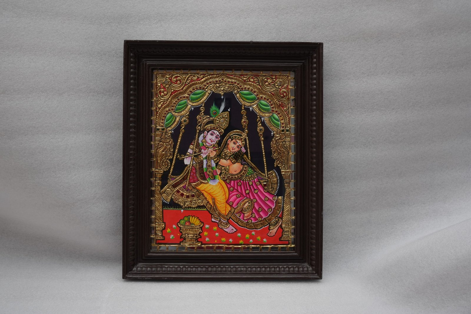Bring home divine energy and artistic elegance with this exquisite Radha & Krishnan Tanjore Painting. Crafted with intricate detailing, rich colors, and traditional gold foil work, this artwork symbolizes joy, prosperity, and the removal of obstacles. A perfect addition to your home décor or a