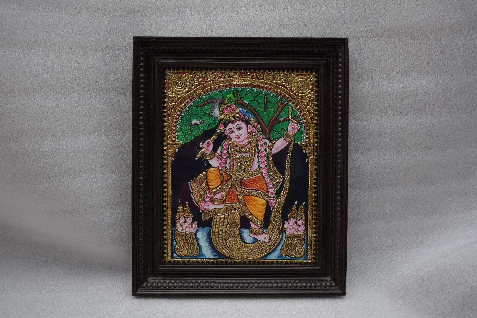 Bring home divine energy and artistic elegance with this exquisite Lord Krishnan Tanjore Painting. Crafted with intricate detailing, rich colors, and traditional gold foil work, this artwork symbolizes joy, prosperity, and the removal of obstacles. A perfect addition to your home décor or a thoughtful
